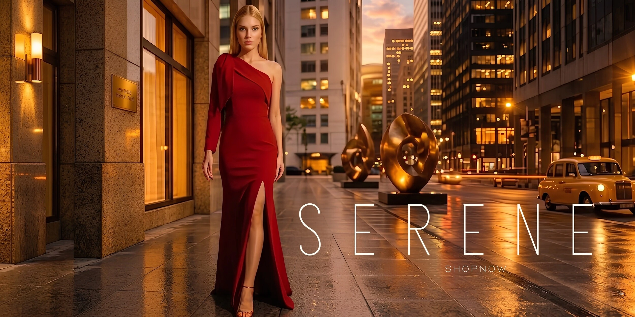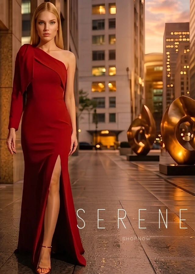 Vestido de Festa com Laço de Um Ombro em Alfaiataria Fenda Marsala
