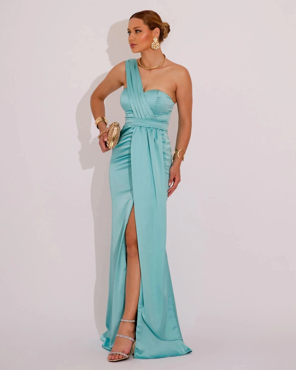 O modelo 1 é o Vestido Longo Milena, um vestido com um toque sensual e romântico ao mesmo tempo. É um vestido com uma saia mais fluida, o que traz leveza, enquanto, por ser de alcinha e ter a abertura nas costas, traz a sensualidade sem ficar vulgar ou exagerado.
