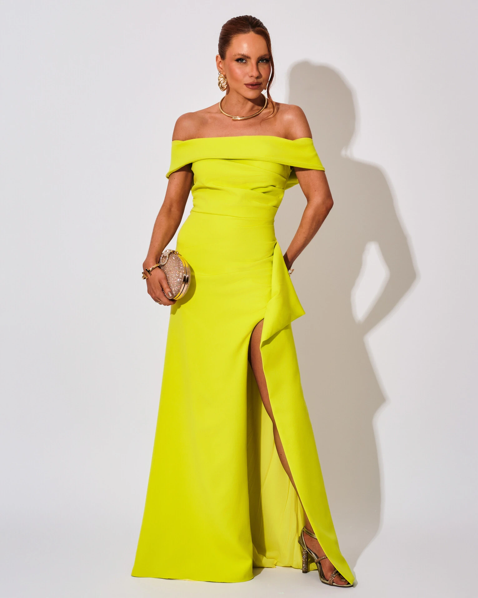 VESTIDO OMBRO A OMBRO COM FENDA EM ALFAIATARIA - Este vestido ombro a ombro com fenda em alfaiataria é perfeito para ocasiões sofisticadas como jantares elegantes, coquetéis, ou eventos como casamentos e festas de gala. A modelagem que deixa os ombros à mostra transmite um charme clássico e atemporal, enquanto a fenda adiciona um toque de ousadia, ideal para quem deseja um look marcante. Seu corte reto e ajustado garante uma silhueta fluida e sofisticada, ideal para ambientes formais, como salões de festas ou restaurantes requintados.