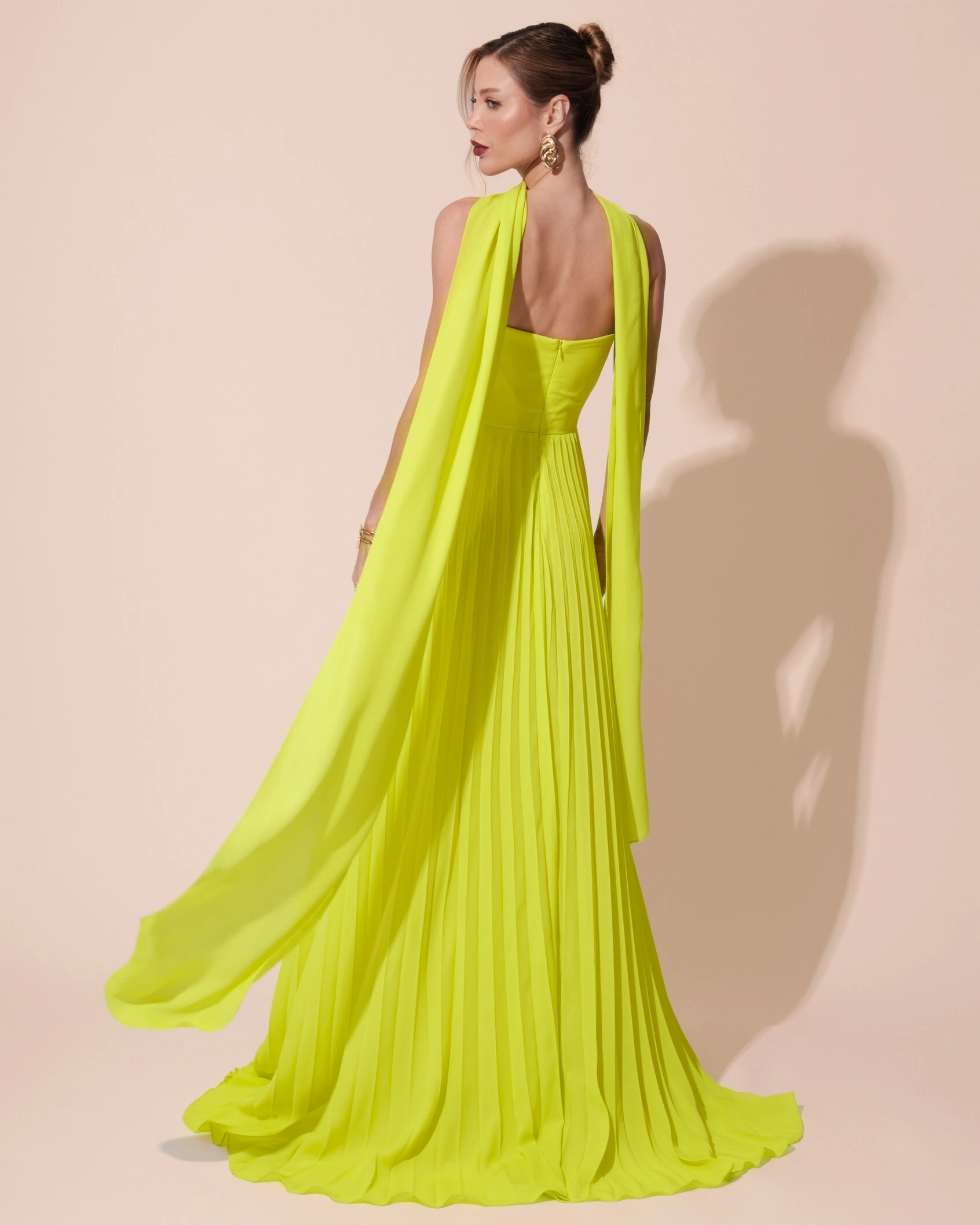 Vestido de Festa Longo Tomara que Caia Plissado com Lenço Verde Lima