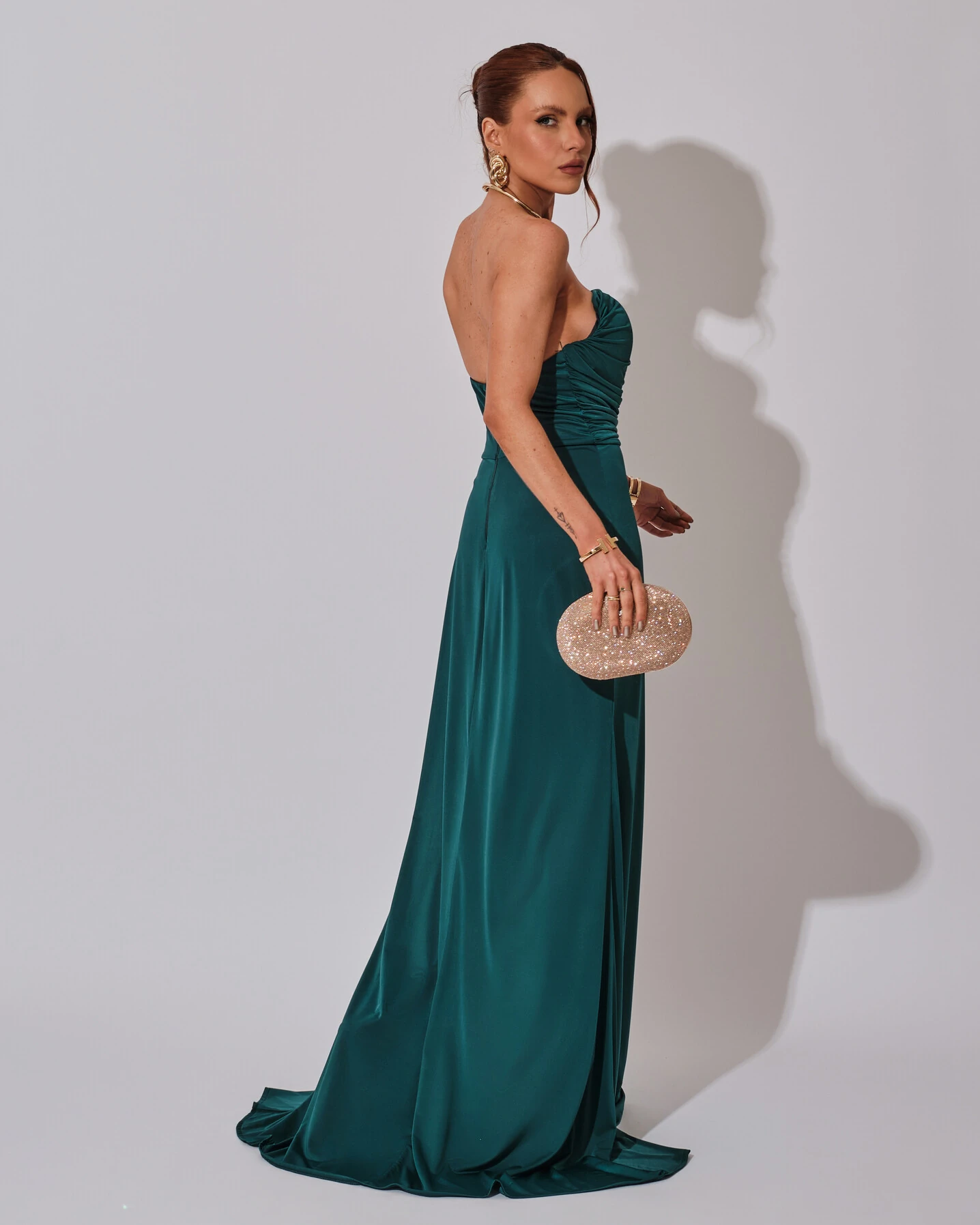 VESTIDO LONGO TOMARA QUE CAIA MALHA FENDA - Este vestido longo tomara que caia em malha é a escolha perfeita para eventos sofisticados e descontraídos, como festas à noite, jantares ou coquetéis. A modelagem ajustada à silhueta garante elegância e conforto, tornando-o ideal para ambientes como salões de festa, recepções ao ar livre ou eventos de gala mais informais. A fenda lateral com flor detalhada adiciona um toque delicado e feminino, criando um visual único e marcante.