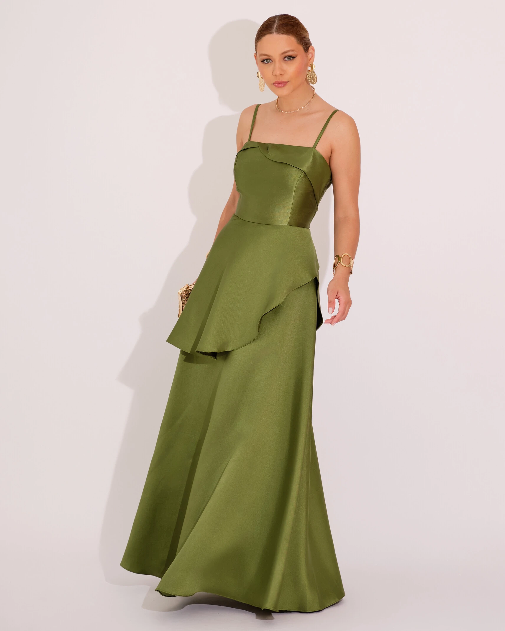 Com sua combinação de recortes refinados e a fluidez das camadas, este vestido é uma opção ideal para eventos de gala, casamentos e festas exclusivas, garantindo que quem o use seja o centro das atenções, com um look que transborda classe e estilo.