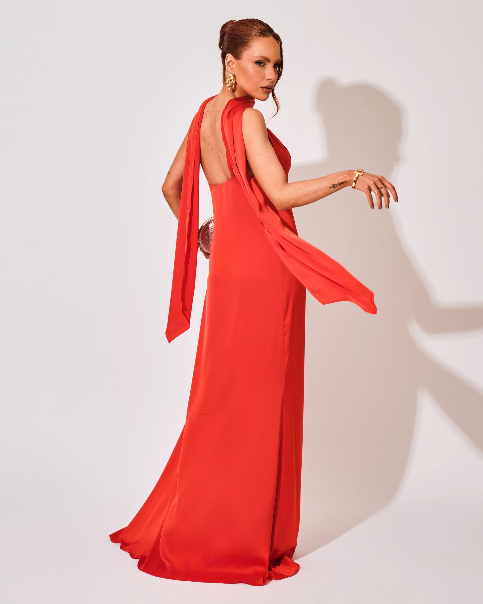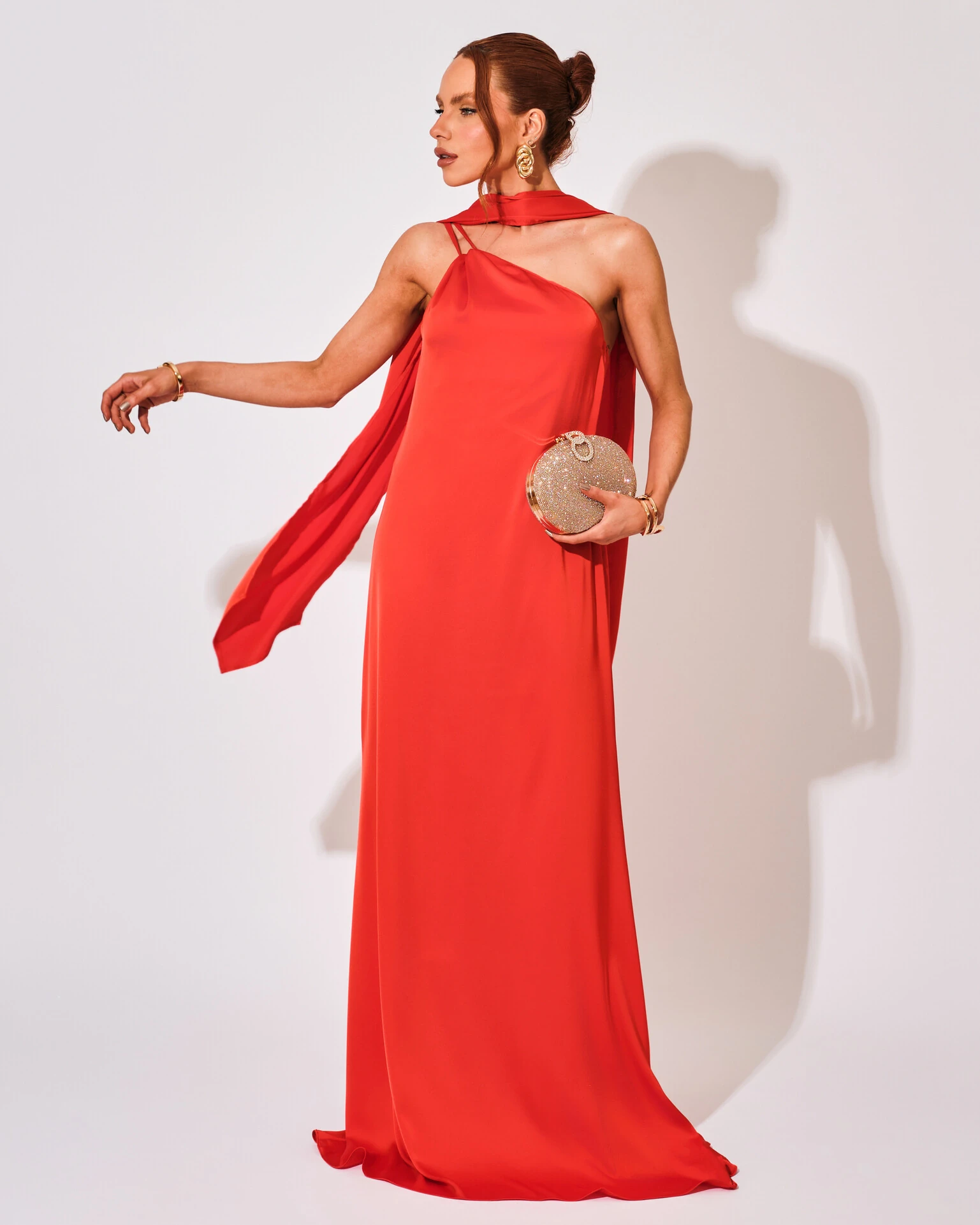 VESTIDO DE FESTA LONGO EM CETIM FLUIDO UM OMBRO SÓ COM LENÇO - O vestido longo de cetim um ombro só é a escolha ideal para quem busca elegância minimalista em festas sofisticadas, casamentos, formaturas e eventos noturnos. Sua modelagem fluida valoriza a silhueta com caimento impecável, enquanto o detalhe do ombro único garante modernidade e charme atemporal. Combine-o com clutch metalizada, joias douradas e um salto fino para um visual marcante. Perfeito para madrinhas, convidadas de casamento na praia ou salão, jantares de gala e celebrações especiais, este vestido une sofisticação e versatilidade em uma peça única.