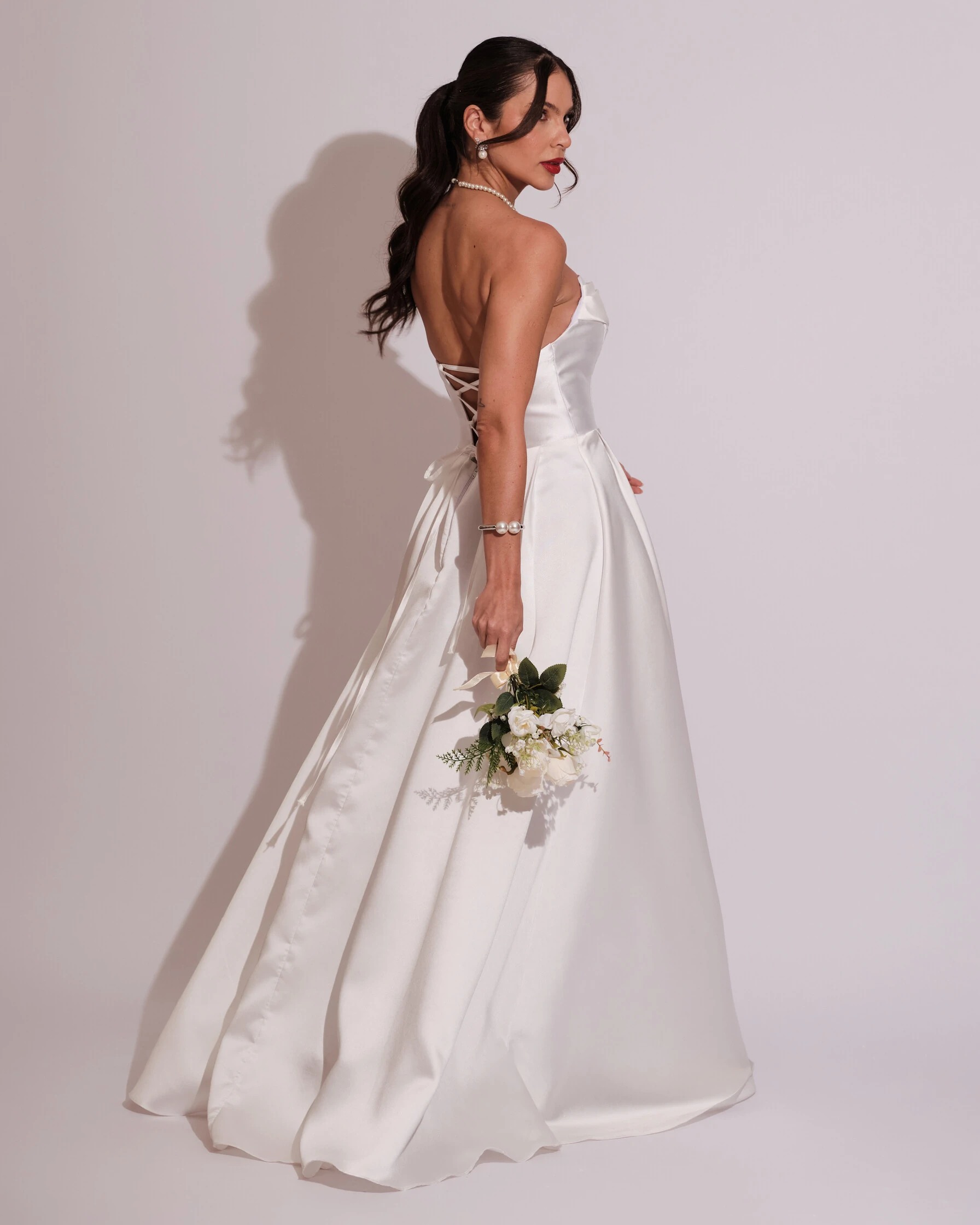 O vestido une estrutura e feminilidade em cada detalhe. Seu caimento acinturado com saia levemente evasê valoriza a silhueta, enquanto o tomara que caia traz um ar moderno e elegante. O destaque fica por conta das costas trançadas com amarração ajustável, que garantem um charme extra e perfeito caimento ao corpo. Além disso, a fenda lateral adiciona um toque sensual e ousado ao visual. Ideal para formaturas, casamentos noturnos ou eventos sofisticados, pode ser combinado com sandálias de salto alto, clutch em tons metálicos e brincos longos que valorizem o colo.