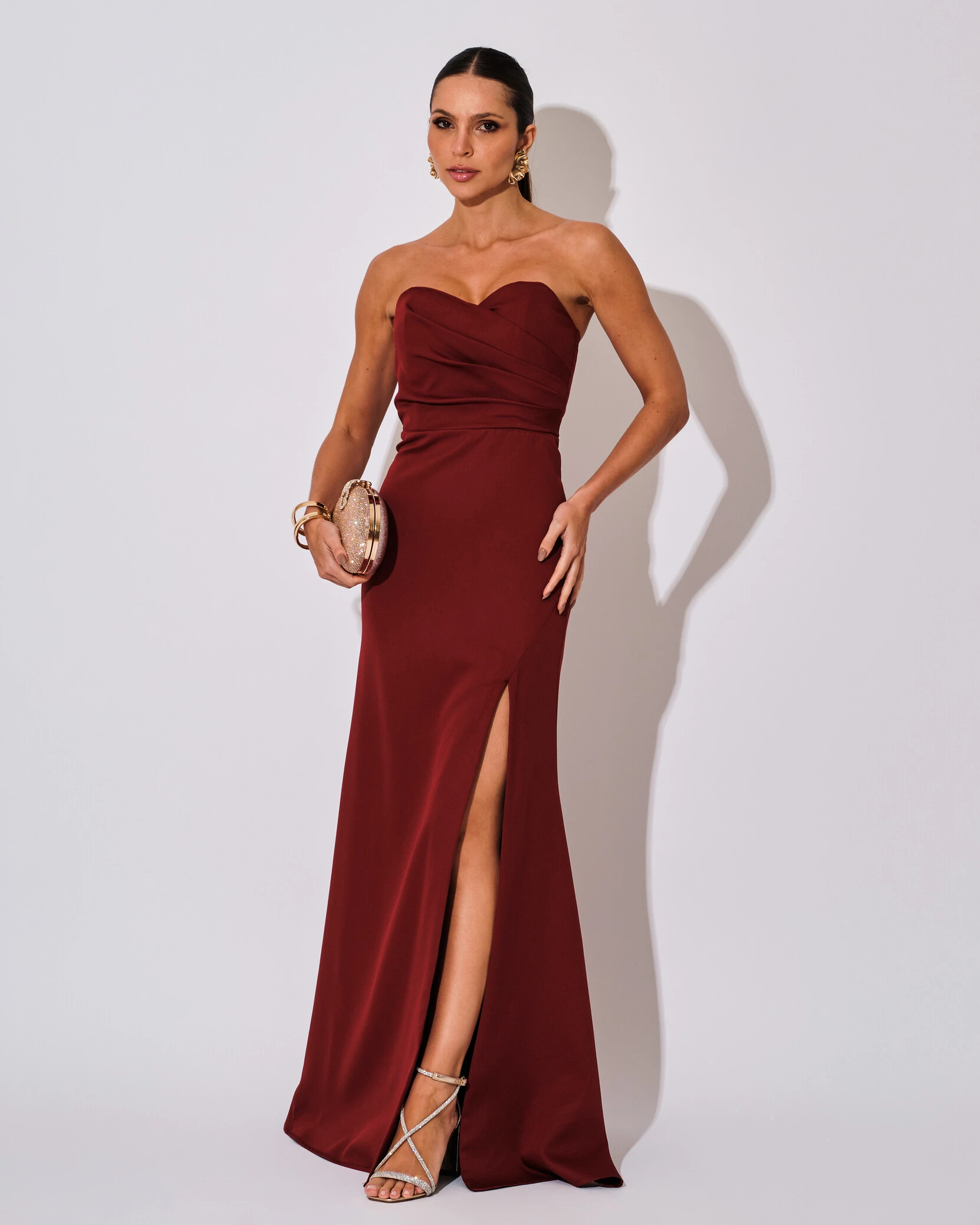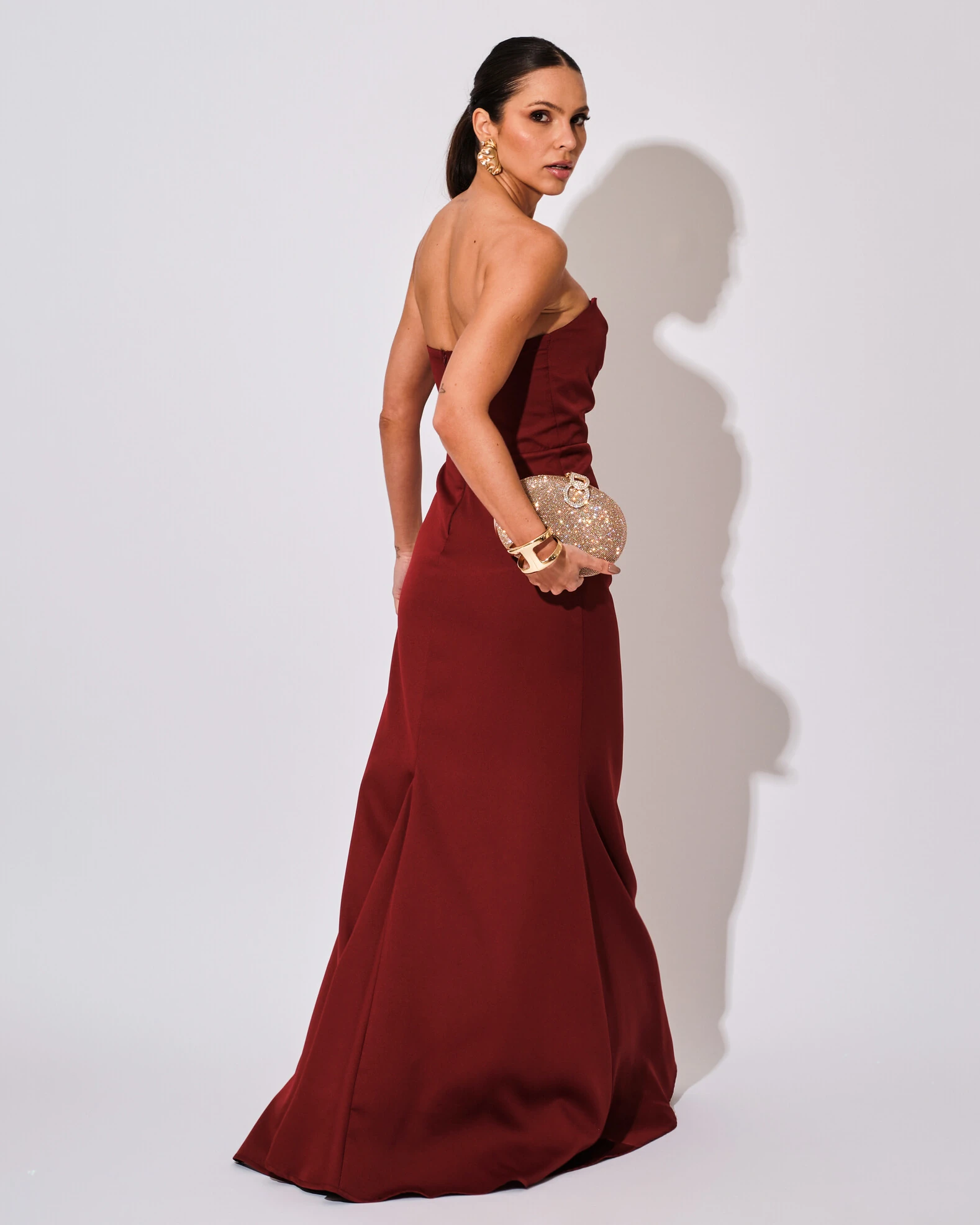 VESTIDO DE FESTA LONGO TOMARA QUE CAIA ALFAIATARIA - Para uma ocasião especial que exige elegância e sofisticação, um vestido de festa tomara que caia em alfaiataria é uma escolha perfeita. Este estilo clássico combina a estrutura impecável da alfaiataria com a feminilidade do decote tomara que caia, destacando os ombros e a linha do pescoço de forma deslumbrante. Ideal para eventos como casamentos, coquetéis ou festas formais, este vestido oferece uma aparência refinada e atemporal.