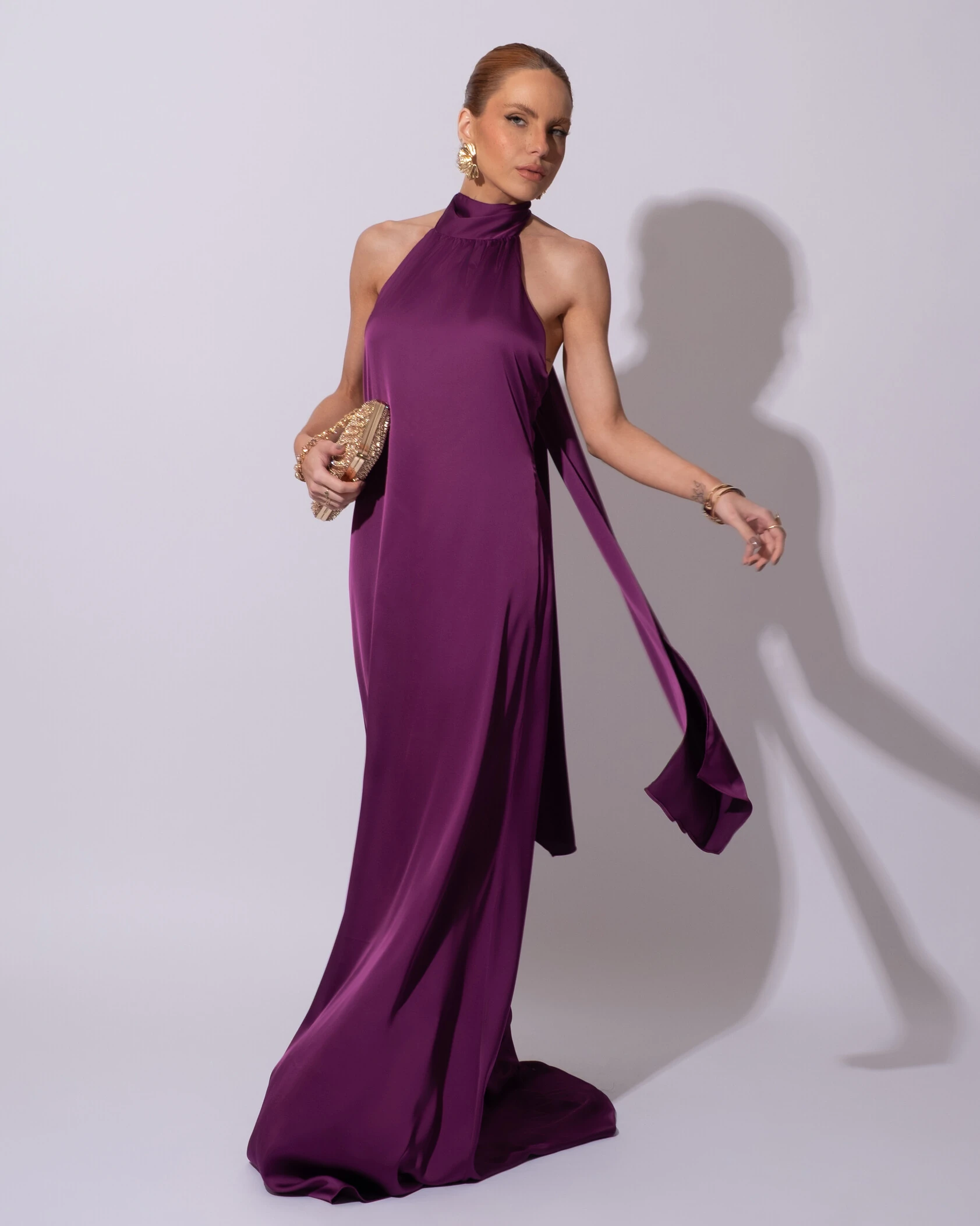 VESTIDO DE FESTA GOLA ALTA COM DECOTE NAS COSTAS ACETINADO- Este deslumbrante vestido de festa é a escolha perfeita para quem deseja exalar elegância e sofisticação. Confeccionado em um tecido acetinado, o vestido possui um brilho sutil que reflete a luz de maneira delicada, criando um efeito encantador. A peça tem um design refinado, com gola alta que transmite uma sensação de modernidade e requinte. No entanto, o grande destaque é o decote nas costas, que oferece um toque sensual e inesperado, equilibrando a sofisticação da gola alta com a ousadia da parte traseira. O caimento do vestido é impecável, moldando-se ao corpo de maneira fluida e elegante, proporcionando liberdade de movimento e conforto. Ideal para eventos noturnos, como jantares formais ou festas de gala, este vestido combina beleza e ousadia de maneira única.