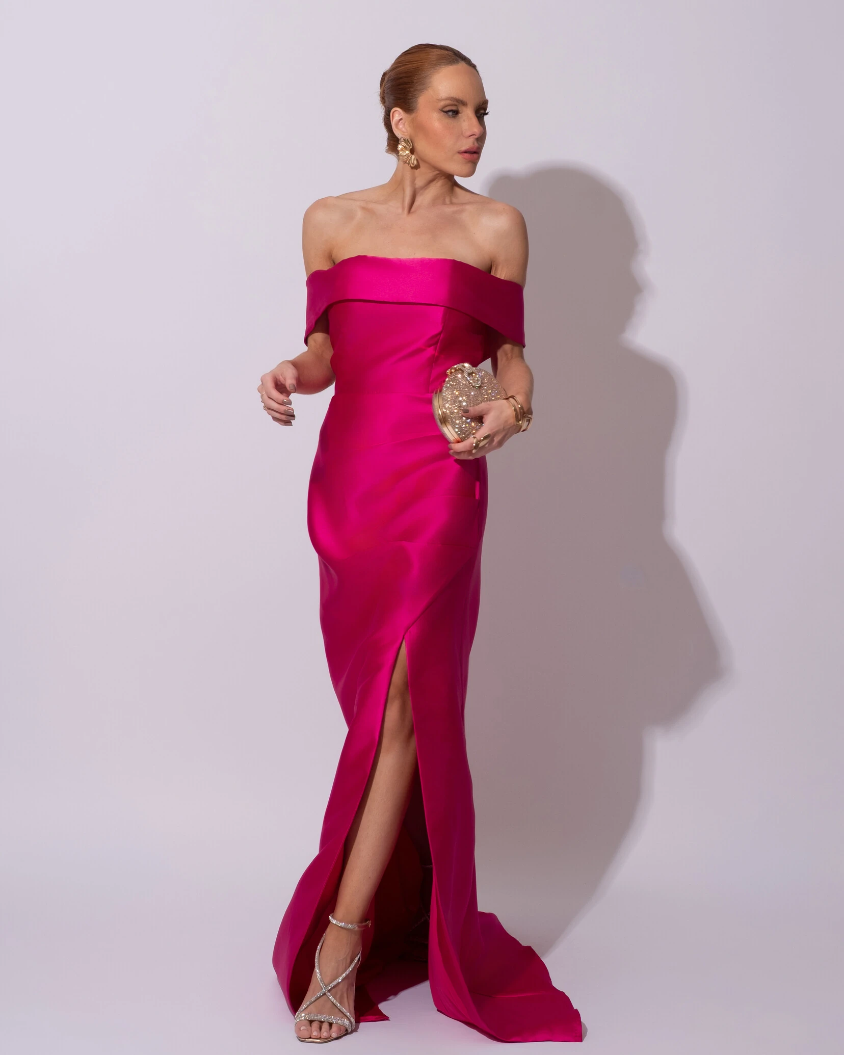 VESTIDO DE FESTA LONGO ZIBELINE OMBRO A OMBRO DRAPEADO FENDA - Este modelo ombro a ombro é puro requinte e versatilidade, ideal para ocasiões como casamentos, formaturas, jantares elegantes e eventos de gala. O decote reto valoriza o colo com sutileza, enquanto o caimento estruturado e o drapeado na saia trazem um toque de sofisticação moderna. Combine-o com brincos alongados e uma pulseira delicada, além de uma clutch pequena e um salto fino para alongar a silhueta. Em tons claros, ele transmite leveza e romantismo; já nas cores intensas ou escuras, ganha um ar marcante e glamouroso — perfeito para diferentes estilos e momentos.