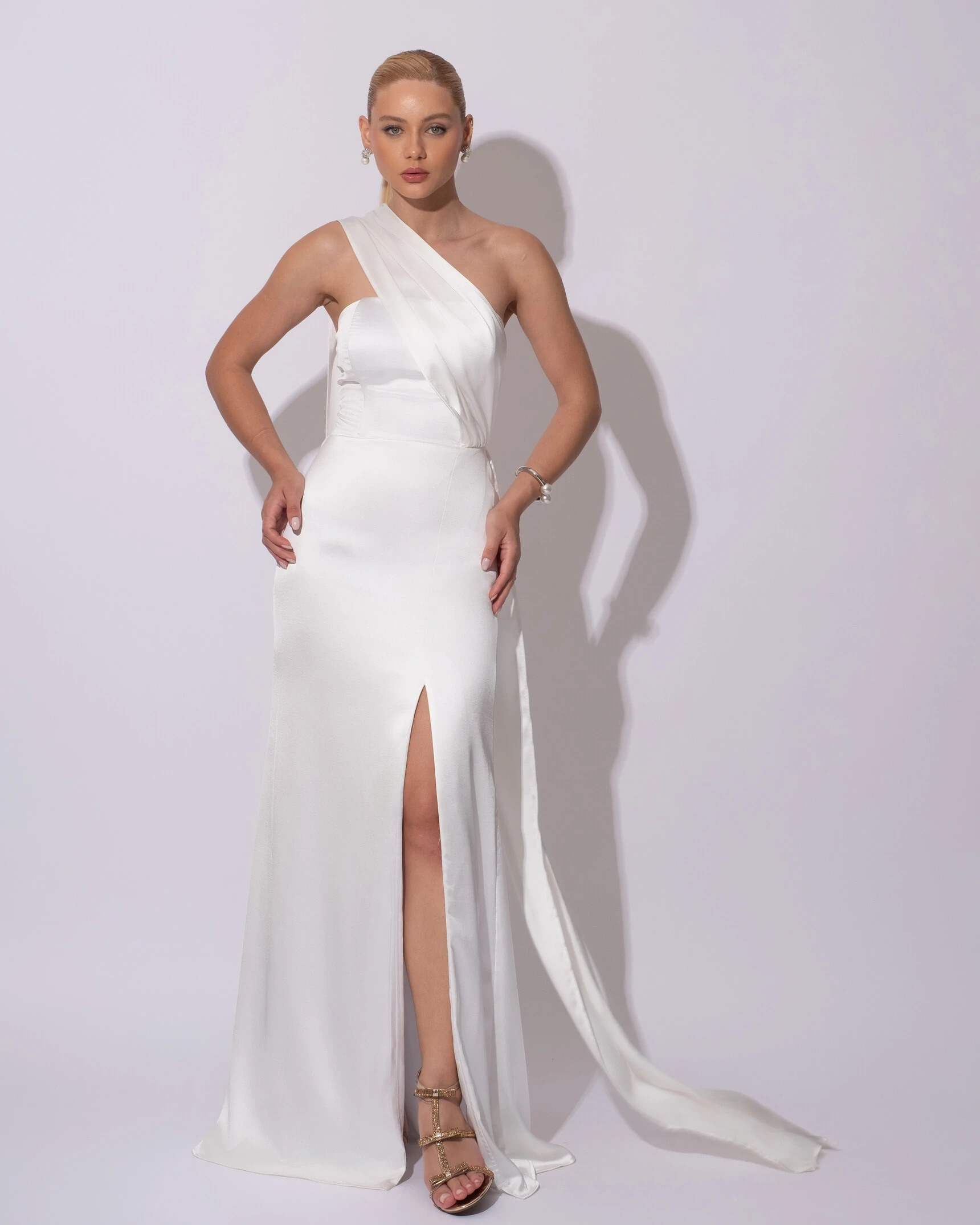 Confeccionado em cetim alfaiataria, o modelo apresenta estrutura elegante e caimento impecável que valoriza a silhueta. Possui design ajustado ao corpo, com detalhe de lenço agrupado na altura da cintura que pode ser usado de diferentes formas, conferindo versatilidade e charme à peça. O tecido acetinado traz brilho sutil e um toque sofisticado, ideal para composições refinadas.
