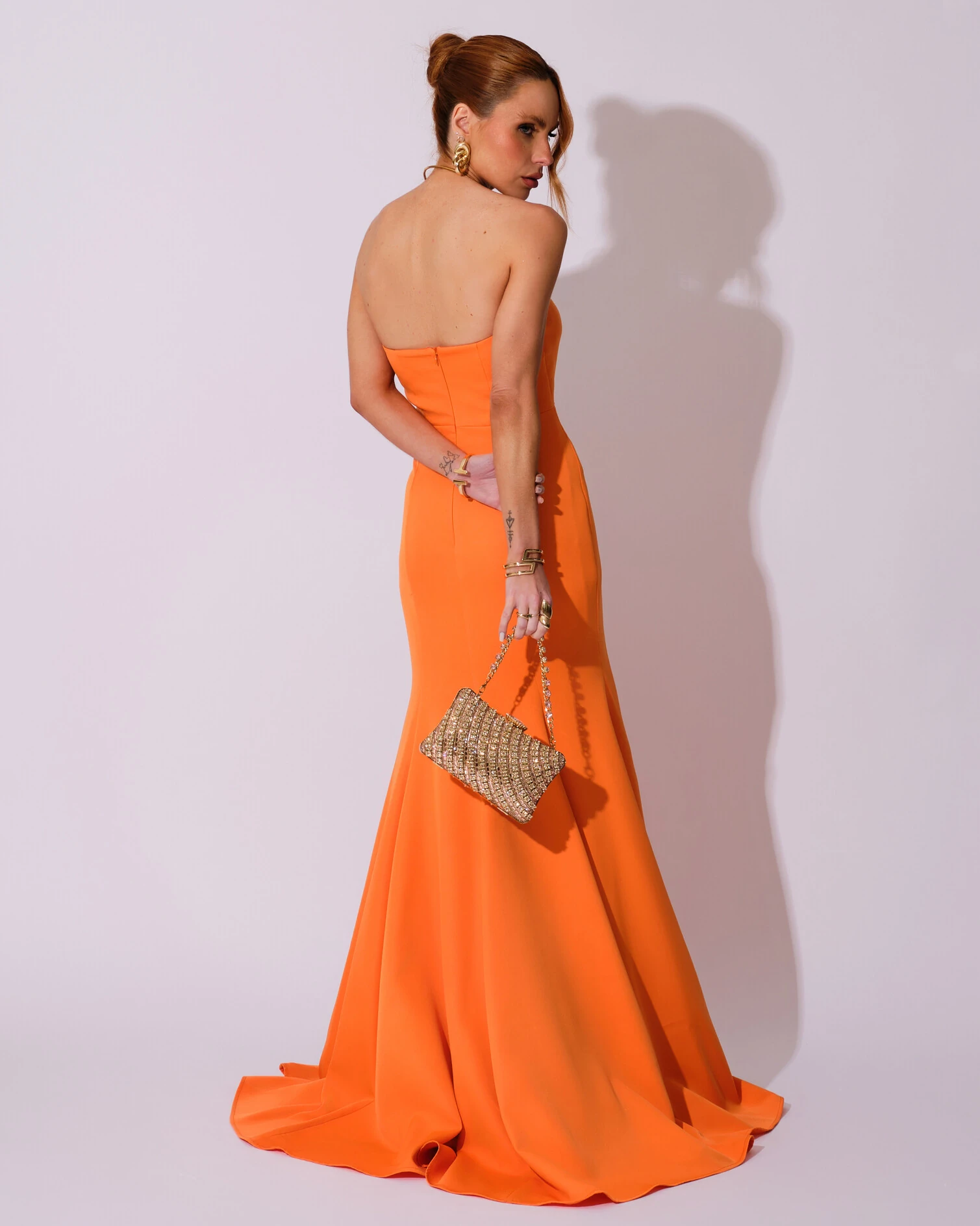 Vestido de Festa Longo Alfaiataria Tomara que Caia Saia Sereia Laranja