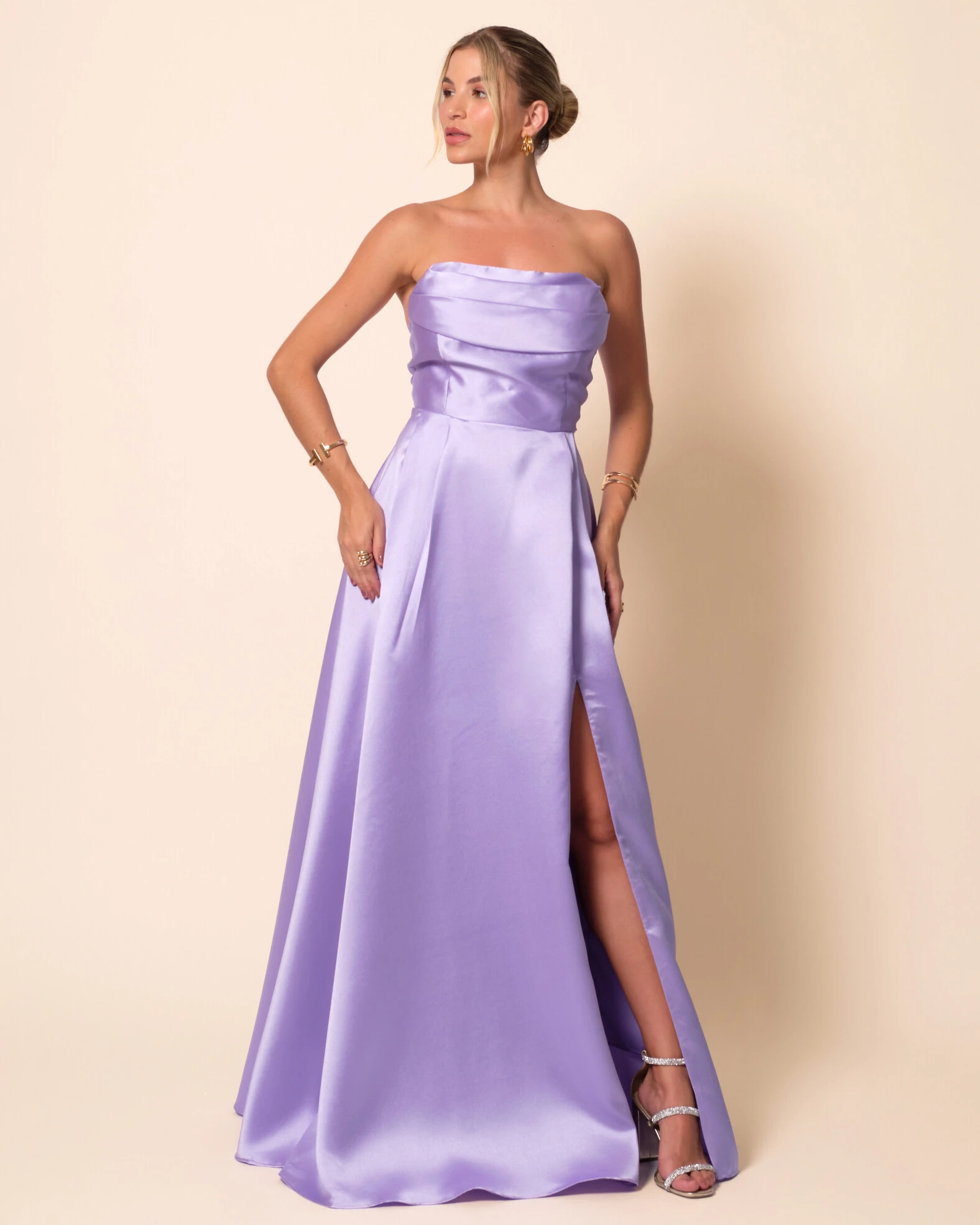 O vestido une estrutura e feminilidade em cada detalhe. Seu caimento acinturado com saia levemente evasê valoriza a silhueta, enquanto o tomara que caia traz um ar moderno e elegante. O destaque fica por conta das costas trançadas com amarração ajustável, que garantem um charme extra e perfeito caimento ao corpo. Além disso, a fenda lateral adiciona um toque sensual e ousado ao visual. Ideal para formaturas, casamentos noturnos ou eventos sofisticados, pode ser combinado com sandálias de salto alto, clutch em tons metálicos e brincos longos que valorizem o colo.