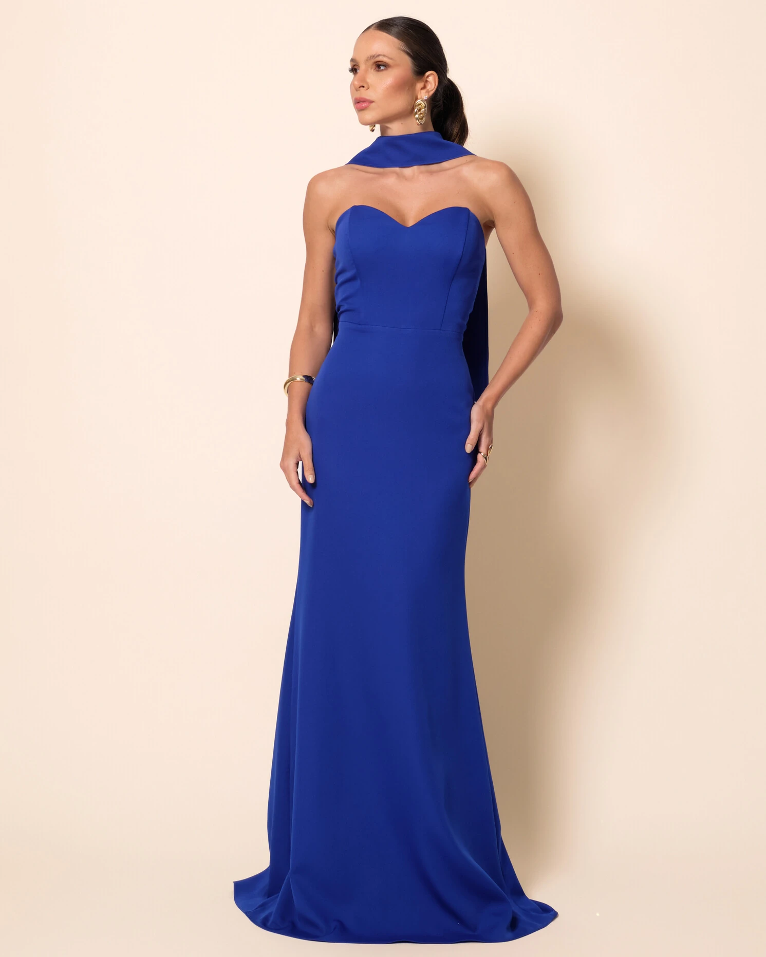 VESTIDO DE FESTA LONGO ALFAIATRIA TOMARA QUE CAIA SAIA SEREIA COM LENÇO - Vestido longo de linhas clássicas e elegantes, com decote tomara que caia em formato coração que valoriza o colo, modelagem ajustada no corpo que realça a silhueta e saia levemente evasê que garante um caimento sofisticado e fluido. Combina perfeitamente com acessórios delicados como colar curto ou ponto de luz, brincos elegantes e sandálias de salto fino, além de clutch minimalista. Ideal para ocasiões especiais como casamentos, formaturas, eventos noturnos, festas elegantes e celebrações que pedem um visual atemporal, feminino e sofisticado.