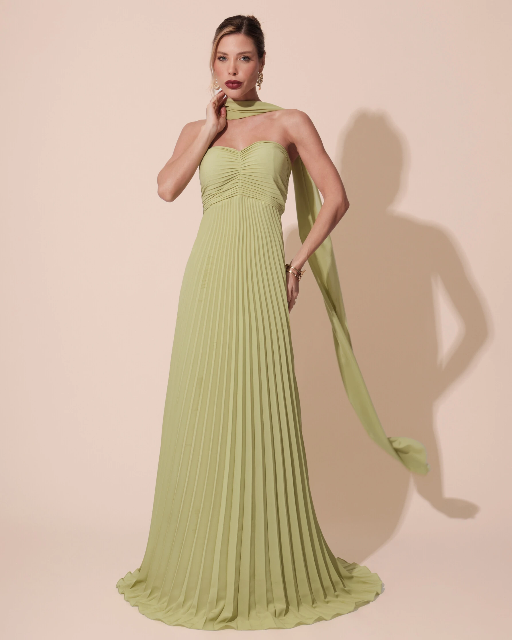 VESTIDO DE FESTA LONGO TOMARA QUE CAIA PLISSADO COM LENÇO - Este vestido longo de festa tomara que caia com saia plissada é perfeito para ocasiões elegantes, como casamentos, galas ou eventos formais ao entardecer. Sua modelagem clássica e fluida traz sofisticação, enquanto a saia plissada oferece movimento e leveza, ideal para ocasiões que pedem um toque de glamour. O lenço, que pode ser usado de diversas formas, adiciona um charme extra, tornando o vestido ainda mais versátil para diferentes tipos de celebrações, seja em ambientes internos ou ao ar livre.