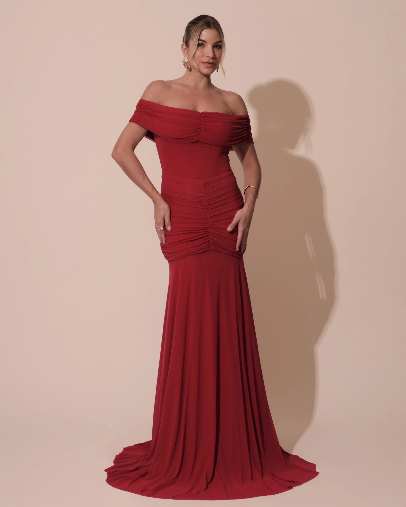 VESTIDO DE FESTA LONGO TULE OMBRO A OMRO DRAPEADO COM SAIA FLUIDA - Esse vestido longo ombro a ombro é a escolha perfeita para quem busca elegância com um toque moderno e sensual na medida certa. O modelo valoriza a silhueta com o busto drapeado que destaca o colo, cintura marcada e saia com leve fluidez que alonga a silhueta, criando um visual sofisticado e impactante. Ideal para casamentos, formaturas, festas de gala e eventos noturnos, ele combina perfeitamente com sandálias de tiras finas ou salto metalizado, clutch estruturada e brincos longos ou pontos de luz para equilibrar o destaque do decote. Para um toque ainda mais glamouroso, aposte em um penteado preso ou semi-preso, deixando o colo em evidência e garantindo um look elegante e memorável.