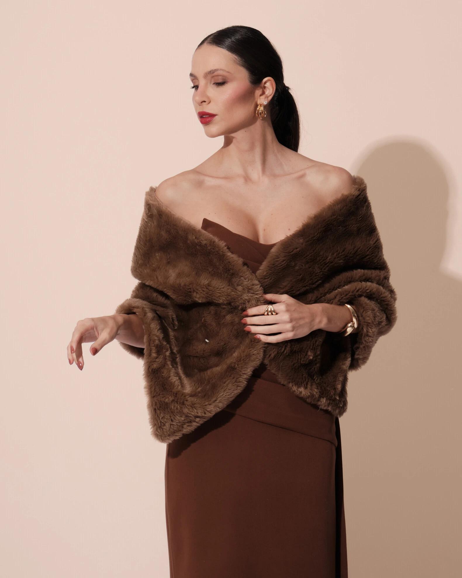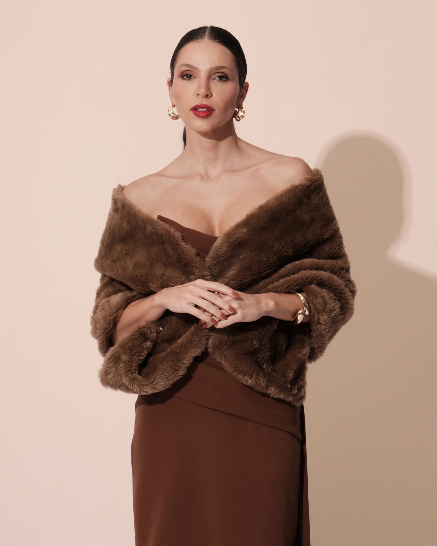 Ideal para dar um toque único no seu look. Estola confeccionado em pele sintética e forro acetinado.